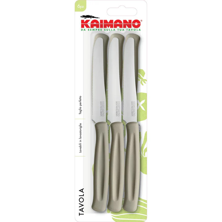 Il set da 6 coltelli da tavola Kaimano Serie Dinamik tortora è pensato per chi desidera unire funzionalità, design moderno e colore sulla propria tavola.
