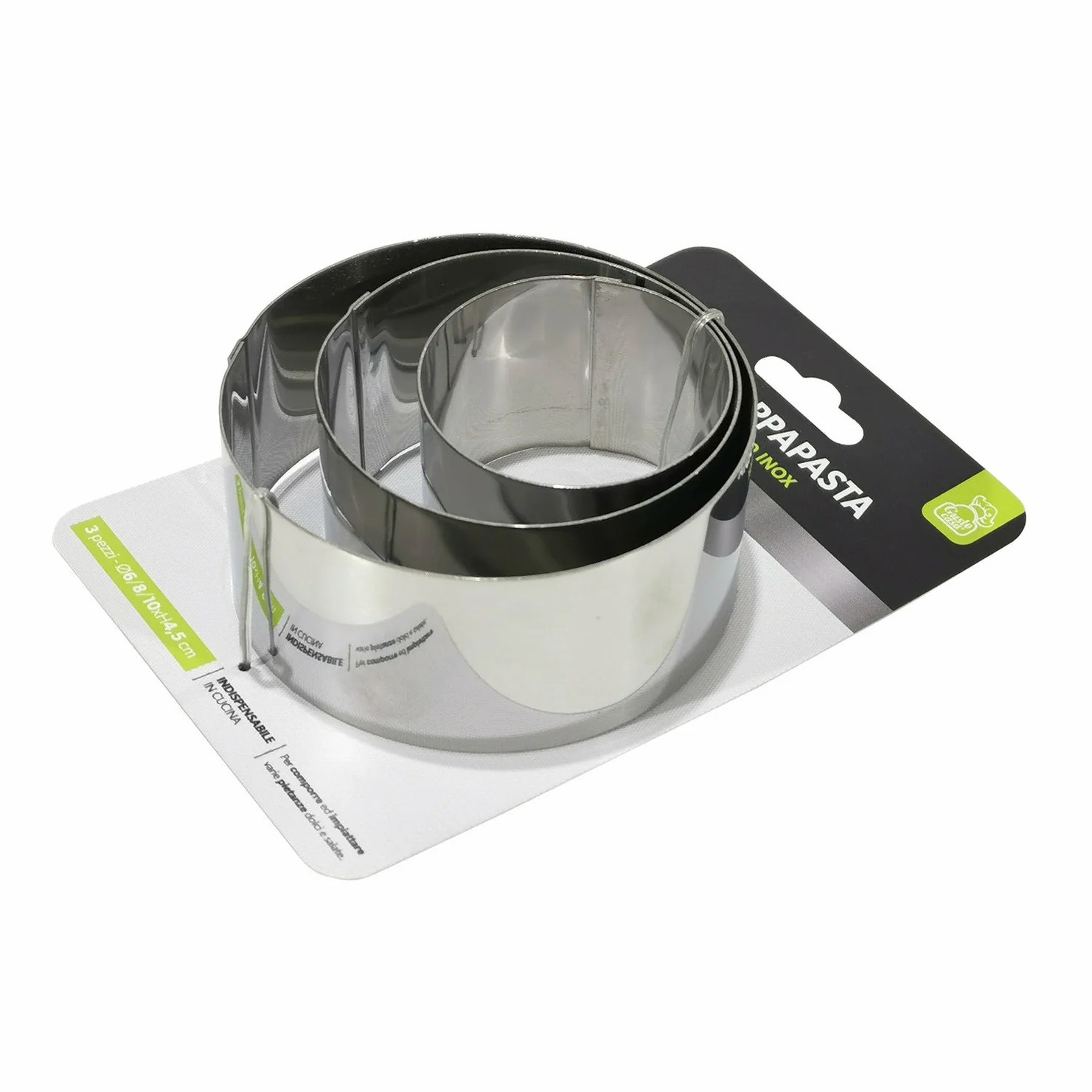 • Dimensioni coppapasta: 1. h 4,5 x ø6 cm - 2. h 4,5 x ø8 cm - 3. h 4,5 x ø10 cm