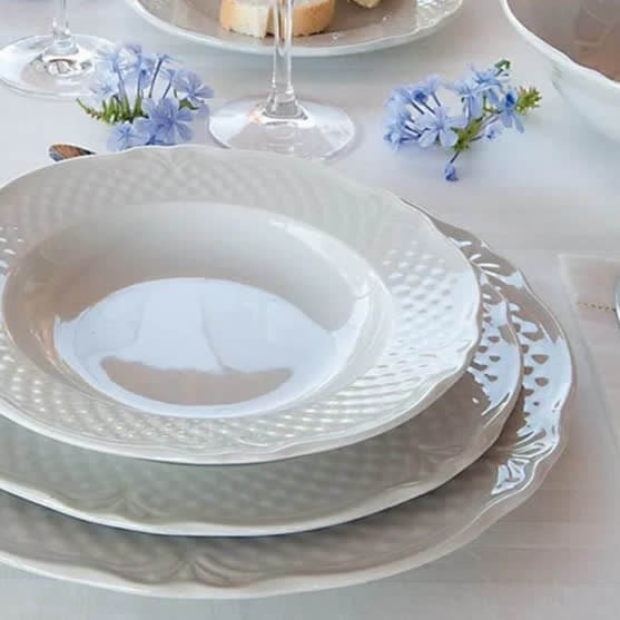 Piatti linea Malaga by Saturnia in porcellana bianca, portano uno stile elegante e raffinato sulle vostre tavole. Le nostre porcellane da tavola, sono resistenti ai lavaggi in lavastoviglie, possono essere utilizzate nei forni a microonde e vengono prodotte seguendo le normative europee che regolano il Food Contact, un protocollo severo messo in atto per la tutela dei consumatori che impone specifici parametri per i materiali che entrano in contatto con il cibo.